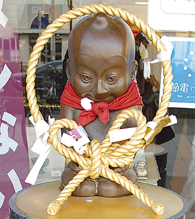 実はこの童子、全国に114店舗ある「お仏壇のはせがわ」の中では、福岡県の福岡本店と、ここ新杉田店にしか置かれていない。そのため、他の店舗でイベントが行われる際に貸し出すこともあり、入口から姿を消すこともあるのだそう。