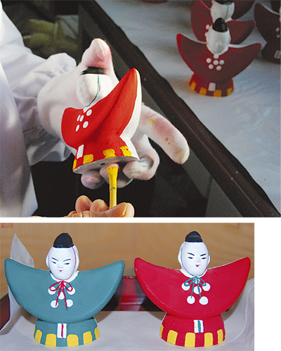 岡村天満宮で毎年作られている西瓜天神人形。昨年11月から行われていた製作が佳境を迎えている。