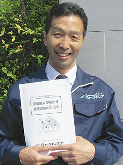 リフォームキングは、地域密着の塗替え専門店。外壁塗装を考えている人には、相見積りの際に参考になる冊子『外壁塗装のヒミツ』を進呈しているので、問合せてみたという。「担当の関さんにお会いして、業者の比較ポイントまで教えていただきました。相見積りをとって検討し、最終的には対応の良さもあって関さんにお願いしたんです」と笑顔。その時に教わった7ポイントが左表。冊子にはより詳しい情報が掲載されている。