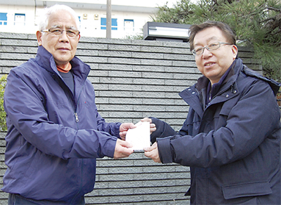 プララ杉田専門店会(佐藤祐治会長)がこのほど、1月に行われたもちつき大会で来場者から募った寄付金を磯子区社会福祉協議会(三浦武会長)に寄付した。総額は1万1579円。