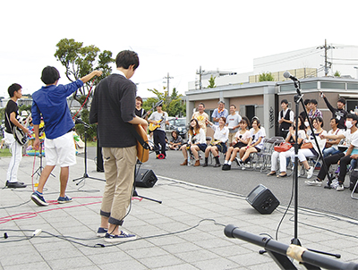 ”磯子の街に音楽を”を合言葉に、区内を中心に活動するアマチュアミュージシャンらで結成されている同団体。当日は、磯子工業高校、磯子高校、氷取沢高校の軽音楽部に所属するバンドも参加して、野外ライブが行われた。