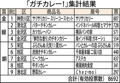 3カ月におよんだ「ガチでうまい横浜の商店街カレーNO・1決定戦」(通称・ガチカレー!)の投票結果がこのほど、発表された。