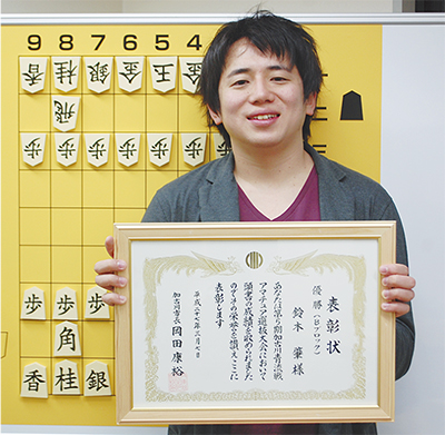 鈴木さんは元奨励会3段の腕前で、2月に開かれた関東アマ将棋名人戦の県予選などでも優勝している実力者。将棋を始めたのは小学2年生のとき。母親に連れられ、京急屏風浦駅近くの磯子将棋センター(森3の18の4)の教室に通ったのがきっかけだった。「将棋人生の原点。センターでいろいろな相手と対局し、徐々に強くなっていった」と振り返る。