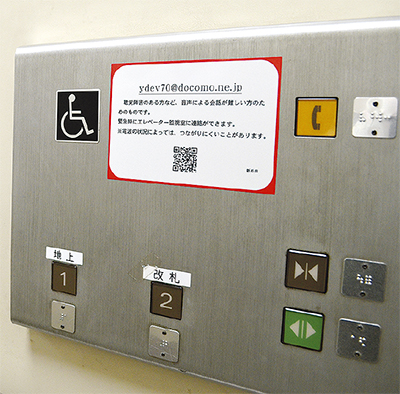 今回の取組は、2016年4月施行の「障害を理由とする差別の解消の推進に関する法律」に先立ち、横浜市健康福祉局が行った「障害者差別に関する事例の募集」で出された意見がきっかけ。聴覚障害のある人から「エレベーターが停止した場合の連絡手段が電話のみである」との意見が寄せられたことを受けて対応した。