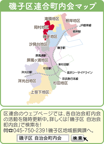 また、10月22・23日の10時〜15時は久良岐公園で「久良岐まつり」を開催。10回目の今回は、岡村小、山王台小のコーラスや藤の木小の和太鼓演奏のほか、模擬店も出店。三澤繁次会長は「地域住民の交流の場として開催します。多くの方に参加してほしい」と話す。