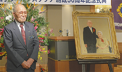 また、式典では同クラブ創立会員の1人である鈴木米蔵会員に、長年にわたる貢献と功績をたたえ、肖像画が贈られた。