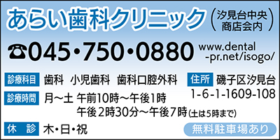 汐見台小学校や周辺幼稚園などから多くの児童、園児が通院している汐見台中央商店会内にある「あらい歯科クリニック」。新井宗高院長は「子どもにとって苦手とする歯医者だからこそ、お子様に無理なく治療してもらいたいと考えております」と話すように、治療中にキャラクターのDVD映像を流し、児童、園児がリラックスした状態で治療を受けられるよう工夫している。