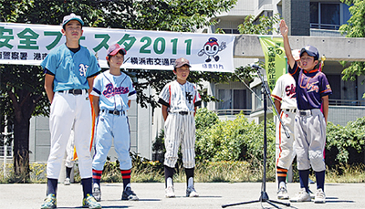 開会式で安全宣言した少年野球チーム「SEKIユーホーズ」で主将を務める鴨志田優人くんは、「今日参加して自転車に乗りながら音楽を聴いてはいけないということを初めて知った。勉強になることが多かった。交通ルールを守って夏休みを安全に過ごしたい」と感想を話していた。