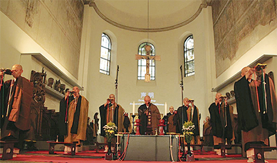 お経に節をつけて詠む日本の伝統音楽の1つ”声明”―。これを研究する全国の曹洞宗の僧侶が構成する「禅(ぜん)-空華龍吟会(くうげりゅうぎんかい)」のメンバー22人が6月28日から7月8日までドイツを訪問し、現地で公演を行った。