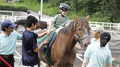 定期レッスンは4歳以上を対象に火・水・金・土曜の週4日実施。現在は子どもを中心に脳性まひや発達障害などの障害児・者50人以上が通っている。また、3歳以上を対象とした体験乗馬会は毎月1回開催している。