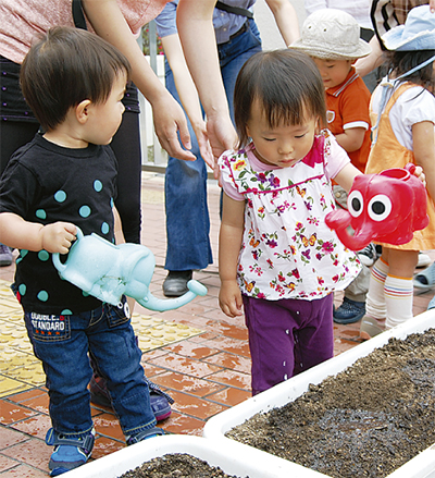 港南区役所が実施している「みんなでつくるふるさと港南事業」の一環として、上大岡東保育園(岡野恵美園長)で5月27日、ひまわりの種まきが行われた。