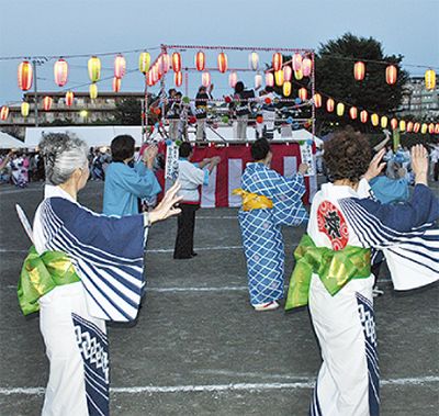 世代間交流を目的に、2010年から始めた同祭りも今年で4回目。会場は、区内各シルバークラブの会員や地域住民など、子どもから高齢者まで多くの人で賑わい、櫓の周りには盆踊りの大きな輪が3重になるなど大盛況だった。