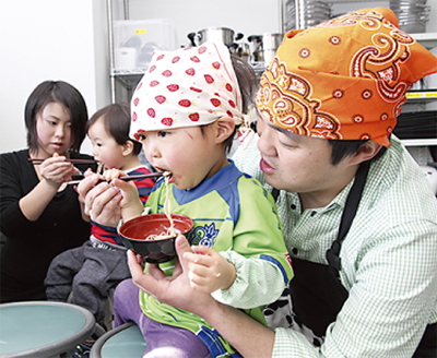 当日は幼児も6人参加し、周りの大人と一緒にこねて伸ばすなどそば打ちを体験。3人の子どもと参加した阿部敦史さん(30)と友紀さん(28)夫婦は都市部の出身で農業とは縁がなかったというが、「子どもに農体験をさせたかった」と家族で満菜農園に参加した理由を話す。そばを試食した姫奈(ひな)ちゃん(6)も「自分で作ったからおいしい」と笑顔を見せた。同じく参加した大貫一幸区長は「この事業で港南区にも畑があることを意識してもらえる。自然に楽しみながら世代間交流もできる」と感想を述べ、最後には参加者全員で地域づくり応援歌「明るく元気ひまわりこうなん」を歌うなど賑やかに終了した。
