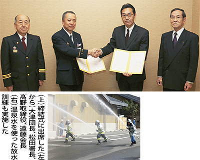 港南消防署(松田康博署長)は大規模地震災害の発生時などにスーパー銭湯「極楽湯横浜芹が谷店」にあるお湯や水を消火用水として使用するための「覚書」を、同店と2月20日に締結した。入浴施設との同様の協力体制は、横浜市内でも初めて。