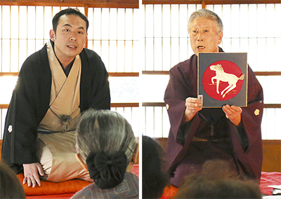 地域の居場所作りなどに取り組む「さわやか港南」(川辺裕子代表)による毎年恒例の寄席が2月22日、天神山貞昌院(上永谷)で行われた。今年は金原亭(きんげんてい)馬治(うまじ)さんによる落語と、桃川健さんによる切り絵が披露され、約40人(主催者発表)が足を運んだ。