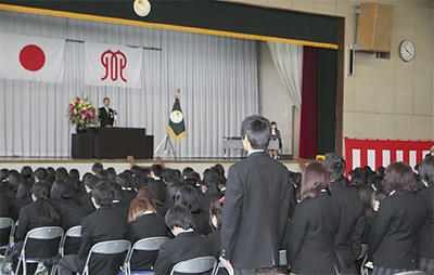 入学式で岡野校長は「失敗やうまくいかなかったことに目をそむけず、逃げずに、『自分が変わらないといけない』という強い意志を持って変えていきましょう。変わりましょう」と呼びかけた。また、1年2組の宇部 碧邑(うべ みゆう)さんと7組の平良 美玖里(たいら みくり)さんが新入生代表として登壇。宇部さんは「学力の基礎をしっかりと固め、仲間を大切にしながら行事などにも積極的に関わっていきたい」、平良さんは「これから始まる希望にあふれた新しい日々に対し、わくわくするといった気持ちでいっぱいです」とそれぞれ新生活の希望を語った。