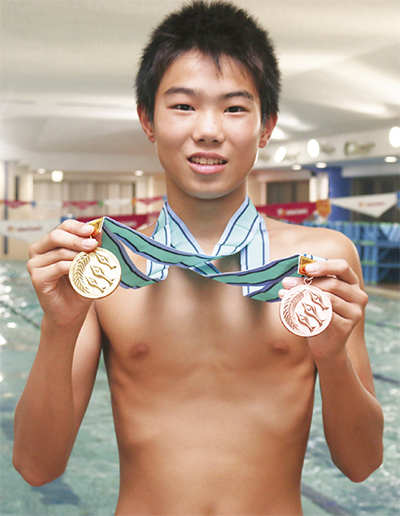 その才能の片鱗は、同大会50mバタフライでも見せつけた。「練習はクロールが中心で、バタフライの練習は春ごろから」と須田君は淡々と振り返るが、大会決勝でも27秒68というタイムで3位に入り、銅メダルを手にした。