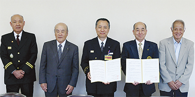大規模地震などの発生時に備え、(株)大津スイミング企画(大津政美代表取締役社長)は11月10日、港南消防署(松田康博署長)との間で協力関係を結ぶ覚書を締結した。スイミングクラブのプール用水などを消火活動に使用するためのもので、同様の覚書は港南区内2例目となる。