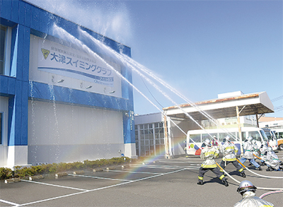 同社のスイミングクラブがある下永谷地区は、河川があるものの夏場には水不足となる場合があるほか、震災時にはがれきなどで取水できないおそれもある。そのため「プールの水が使えれば、安定的な取水が期待できる」と港南消防署芹が谷消防出張所の近藤敬出張所長は今回の覚書のねらいを話す。また、一般的な防火水槽の容量が約40㎥であるのに対し、大津スイミングクラブのプールには約320㎥の豊富な水がある。