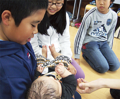 横浜市が13年度に行った妊娠中、出産後の女性へのアンケート調査によると、第1子の誕生までに乳児の世話をしたことがない人は74・1%と高い割合を示す。さらに妊娠中から「育児に不安を感じる」人は56・5%、出産後半年では74・6%に及ぶ。渡辺理事長は拠点開所後間もなく、育児不安を訴える母親が多い現状から、次世代育成の目的で同授業の必要性を行政に提案してきた。「子どもたちが親になったとき不安なく子育てできるように、記憶の残る思春期に赤ちゃんを抱っこして、命の重みや存在を知ってほしい。児童虐待が増える中、今後の虐待防止策としても必要」と話す。