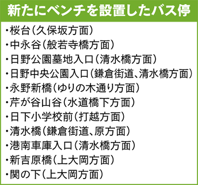 港南土木事務所は3月、区内のバス停11カ所に計15基のベンチを設置した。