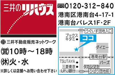 港南台駅から徒歩1分の「三井のリハウス港南台店」。15人いるスタッフの中には、港南台エリアに精通したベテランや女性の営業スタッフもいて心強い。