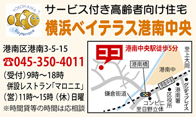 港南中央駅から徒歩5分の好立地に新しくサービス付き高齢者向け住宅「横浜ベイテラス港南中央」=写真=が開所した。1階には誰でも利用できるレストラン「マロニエ」が併設されており、地域交流の拠点となることが期待されている。