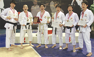 トルコのイスタンブールで5月30日から31日(現地時間)に開催されたIJKA(国際日本空手道協会)主催の空手世界大会で、日本チームとして出場した国際尚武館空手道連盟(内海亨斗(たかと)代表・港南区丸山台)の選手たちが5部門で優勝に輝いた。最優秀選手には、同チームの奥田健介さん(=今号人物風土記で紹介)が選ばれた。