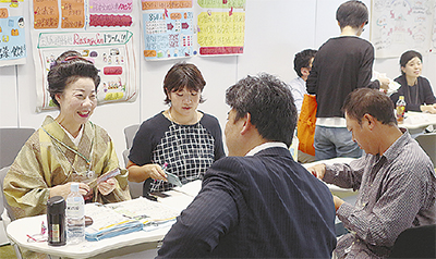 当日は、地域貢献に力を入れている建設業や造園業など18社、うち区内からは(株)キクシマ、(株)渋谷興業、(株)新世、中村建設(株)の4社が参加。会場では、グループ・企業の担当者が自己紹介をした後、グループごとに設けられたブースを企業担当者が訪れる形で自由に交流がなされた。