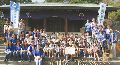 横浜港南ライオンズクラブ(川前守会長)は10月4日、戦没者慰霊堂でさつき台子ども会と共に清掃活動を実施した=写真。