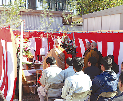 同組合では現在、事務所の建替えを進めており、11月27日には地鎮祭を挙行=写真下。50年を節目とする建替えは、「(今年4月に逝去した)鳥居秀行前理事長の念願でもあった。歴代の理事長に恥じないよう、組合として協力し、地道にやっていきたい」と臼井理事長は思いを語った。