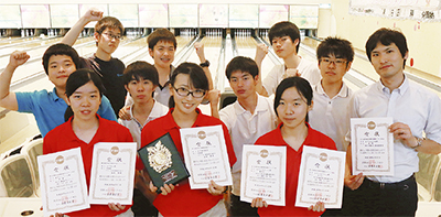 県立横浜南陵高校ボウリング部の女子が11日、12日に群馬県で行われた「関東地区高等学校対抗ボウリング競技大会」に出場し、個人戦、2人チーム戦の総合ポイントを競う学校対抗戦で優勝を果たした。7年ぶりの関東大会優勝で、部長の内田侑希さん(3年)は、「先生方を表彰台に乗せたかった。それが叶って良かった」と笑顔を見せた。