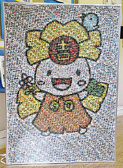 また全児童の共同作品の除幕式もあり、モザイクアートがお披露目された。今年4月から撮影された児童らの写真3000枚を使って50周年を祝うマスコットキャラクター「はらっこちゃん」を描き出した。