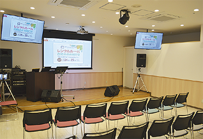 今回設置されたスペースには、定員8人の部屋が2つ(A・Bルーム)、定員40人の部屋が1つ(Cルーム)の合計3部屋を準備。各部屋ともに椅子やテーブルなどを設置しているほか、防音設備を整え、最新のカラオケ機材も備えて地域のサークル活動などにも対応する。