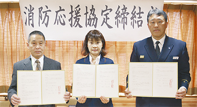 栄区飯島町の介護付き有料老人ホーム「ネクサスコート本郷台」(渡辺弘子施設長)と飯島町内会(横川惠会長)は3月30日、災害発生時の消防応援協力に関する協定を結んだ。