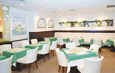 約50席ある店内はイラストが散りばめられ、メニューは歌と冒険が大好きなけろけろけろっぴの世界観を大切にしたという。松本さんは「けろっぴと育ってきたお母さん世代を中心に家族や友人同士でも楽しんでほしい」と話す。