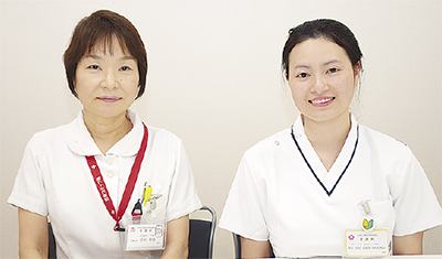 看護部長の近松さんは「実践で伝わる看護は共通言語だと思う。懸け橋として、看護に国は関係がないことを将来伝えてくれたら」と期待を込める。フオンさんは「患者さんの気持ちがしっかりと分かる看護師になりたい」と表情を引き締めて話した。