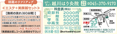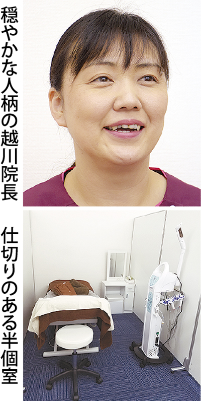 市営地下鉄「港南中央」駅から徒歩1分、桜道入口交差点前にある「越川はり灸院」の越川善子院長=写真上=は、鍼灸師としてクリニック勤務の経験や専門学校講師の経歴も持つ。