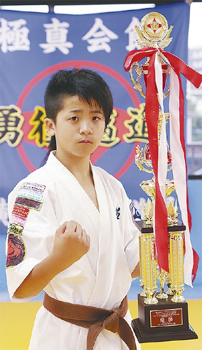 港南区港南台の極真会館神奈川県井上道場に通う松下武蔵君(日下小学校6年)が、先月24日に大阪市内で行われた空手の全国大会「第22回グランドチャンピオン決定戦」に出場し、初優勝を果たした。