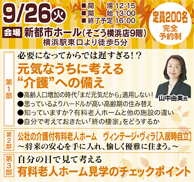 神奈川県住宅供給公社主催 シニアライフセミナー 参加無料