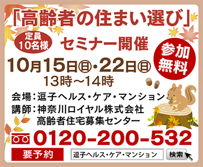 10月14日(土)から22日(日)まで、秋の個別見学会を開催。各日10時〜16時(要予約)。事前予約で昼食の試食もできる。また、上記日程で毎回好評の高齢者セミナーも開催。申込・資料請求は、【フリーダイヤル】0120・200・532までお気軽に。