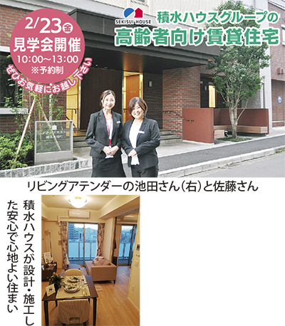 内覧会が2月23日(金)に行われるので、老人ホームとは違う住まいを探している人や親御さんとの近居を検討している家族の人などもぜひ参加してみては。