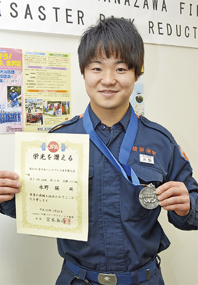 港南区港南在住で金沢消防署に勤務する消防士長の水野瑛さん(26)が1月27日、和歌山県で行われた「全日本ベンチプレス選手権大会」の一般男子66kg級で準優勝した。首痛に悩まされたが、フォーム改造などに取り組み復活。自己ベストの232・5kgを上げた。