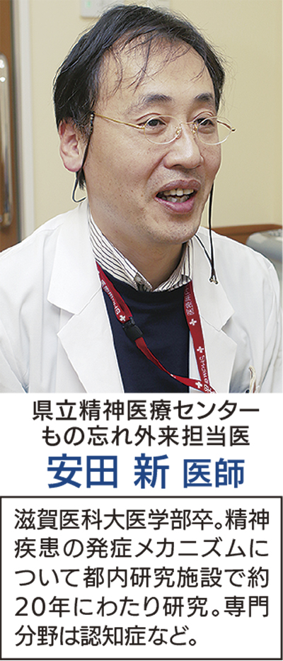 港南区芹が谷の県立精神医療センターで昨年秋から、新たに「もの忘れ外来」の受付が始まった。同センター専門医療部長の安田医師は、単なる加齢によるものか認知症の初期症状かの見極めが難しい「もの忘れ」について、できるだけ早期に専門医の診断を受けることを呼びかけている。