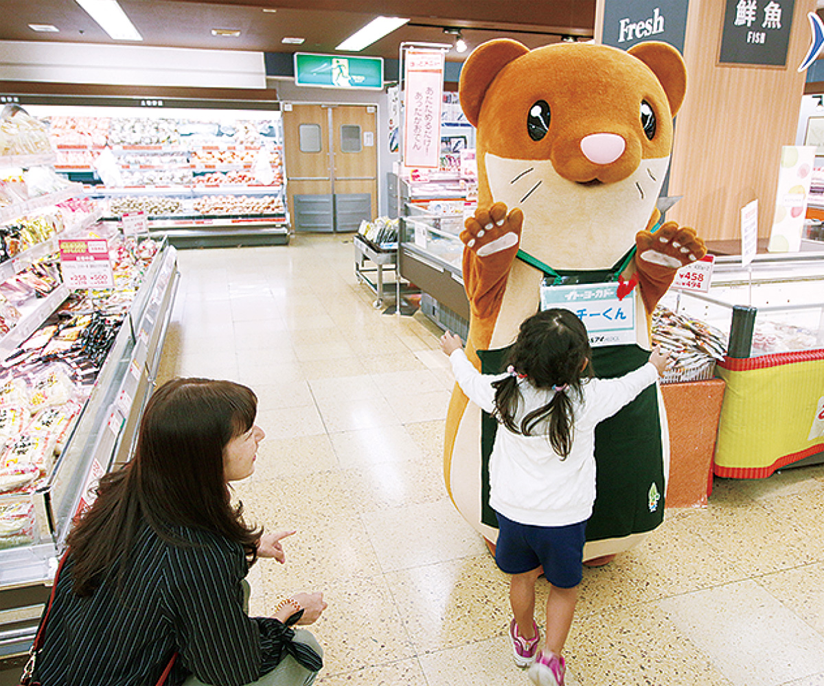 栄区いたち川のマスコットキャラクター「タッチーくん」が4日、イトーヨーカドー桂台店で一日店長を務めた。タッチーくんが一日店長を務めるのは初めて。