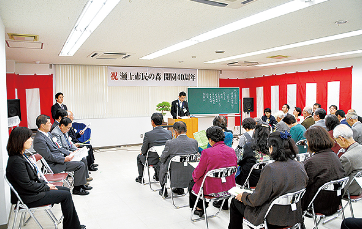栄区上郷町の「瀬上市民の森」の開園40周年を祝う式典が6日、JA横浜本郷東支店で開かれた。地権者や愛護会のメンバー、関係者らが参加し、節目を祝った。また、シンボルともなっている瀬上池をどう守っていくか、これからの課題への認識を深める場ともなった。