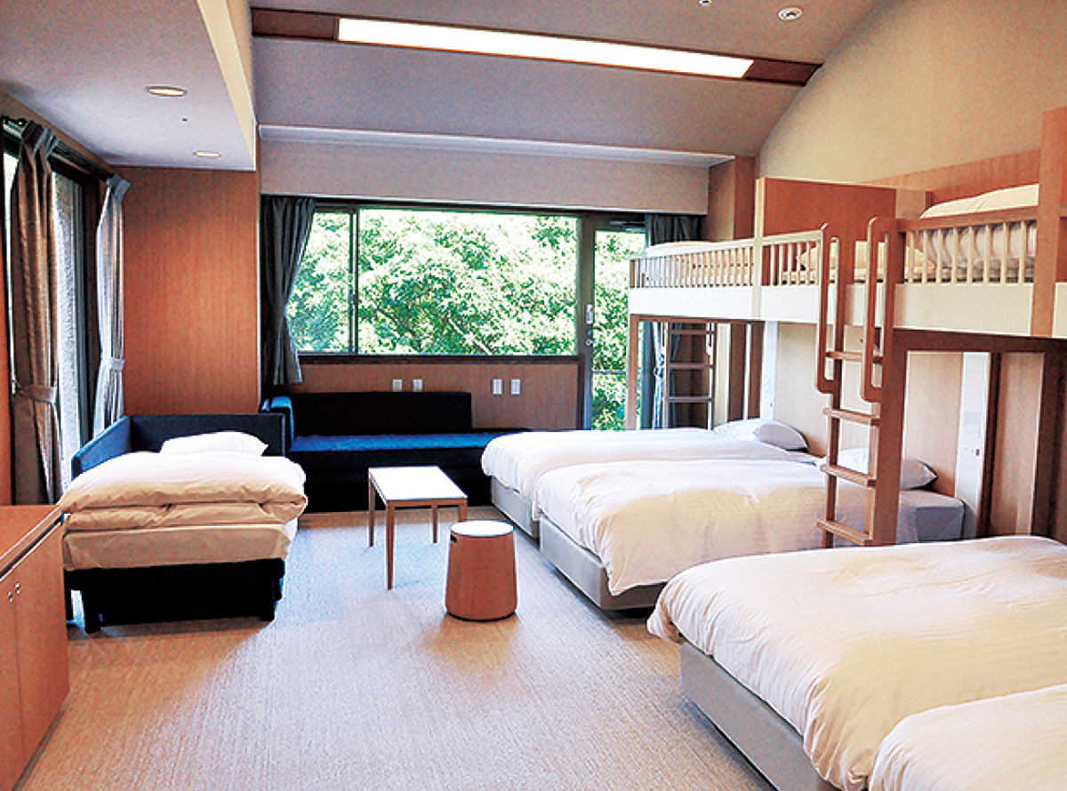 リニューアルでは、体験学習にも一般の旅行にも対応できる客室として、それぞれ設えが異なるスタンダードルームとエグゼクティブルームを設置。全室にベッドを導入し、快適性の向上を図った。