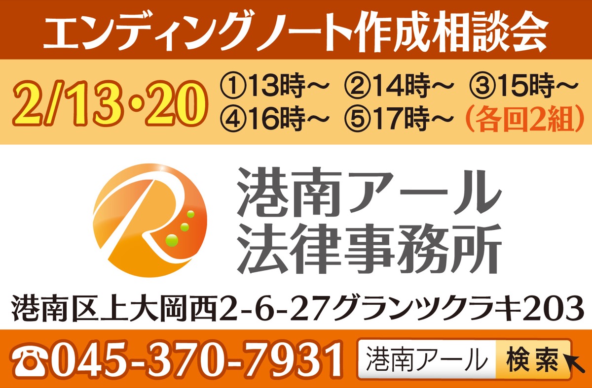 地元出身の高栁良作弁護士が代表を務める上大岡の「港南アール法律事務所」がこのほど、エンディングノート作成相談会を開催する。参加無料で、日程は2月13日(木)と20日(木)の午後1時から。