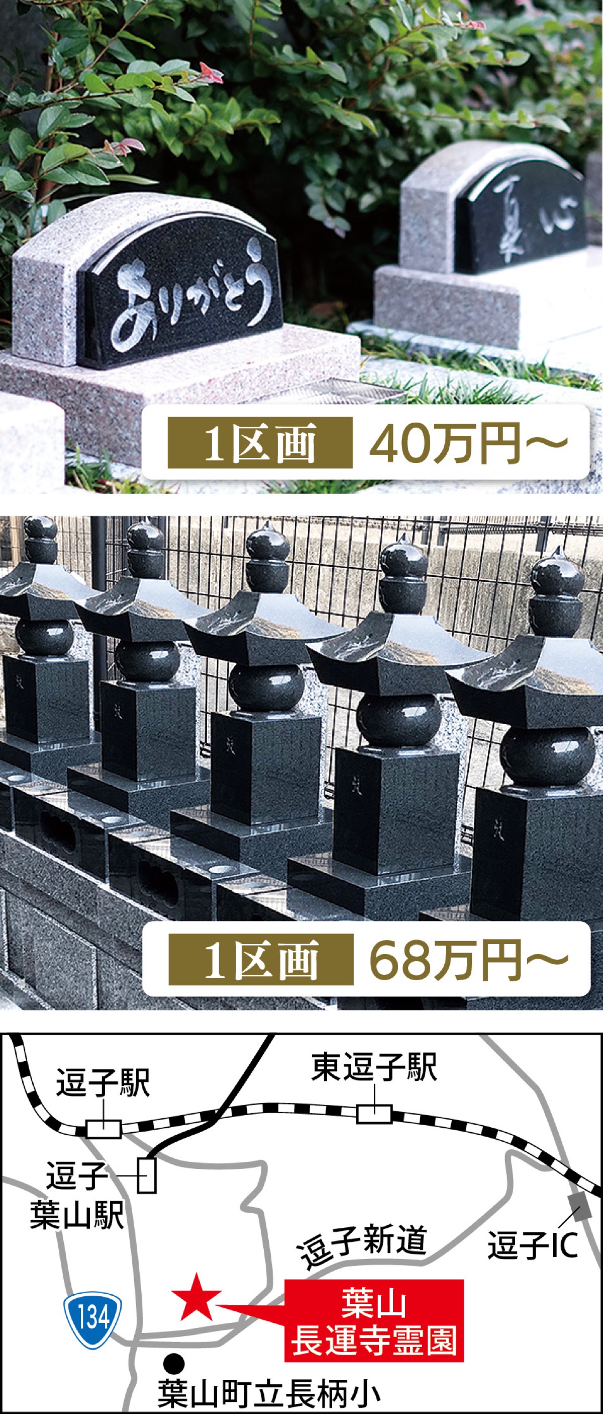 葉山の豊かな緑と、爽やかな潮風が吹く南向きの峰に位置し、国道134号線や横浜横須賀道路「逗子IC」からすぐでアクセスの良さも魅力。いずれも三十三回忌までの永代供養付で、納骨費や年会費、管理費込み。現地見学は随時受付。