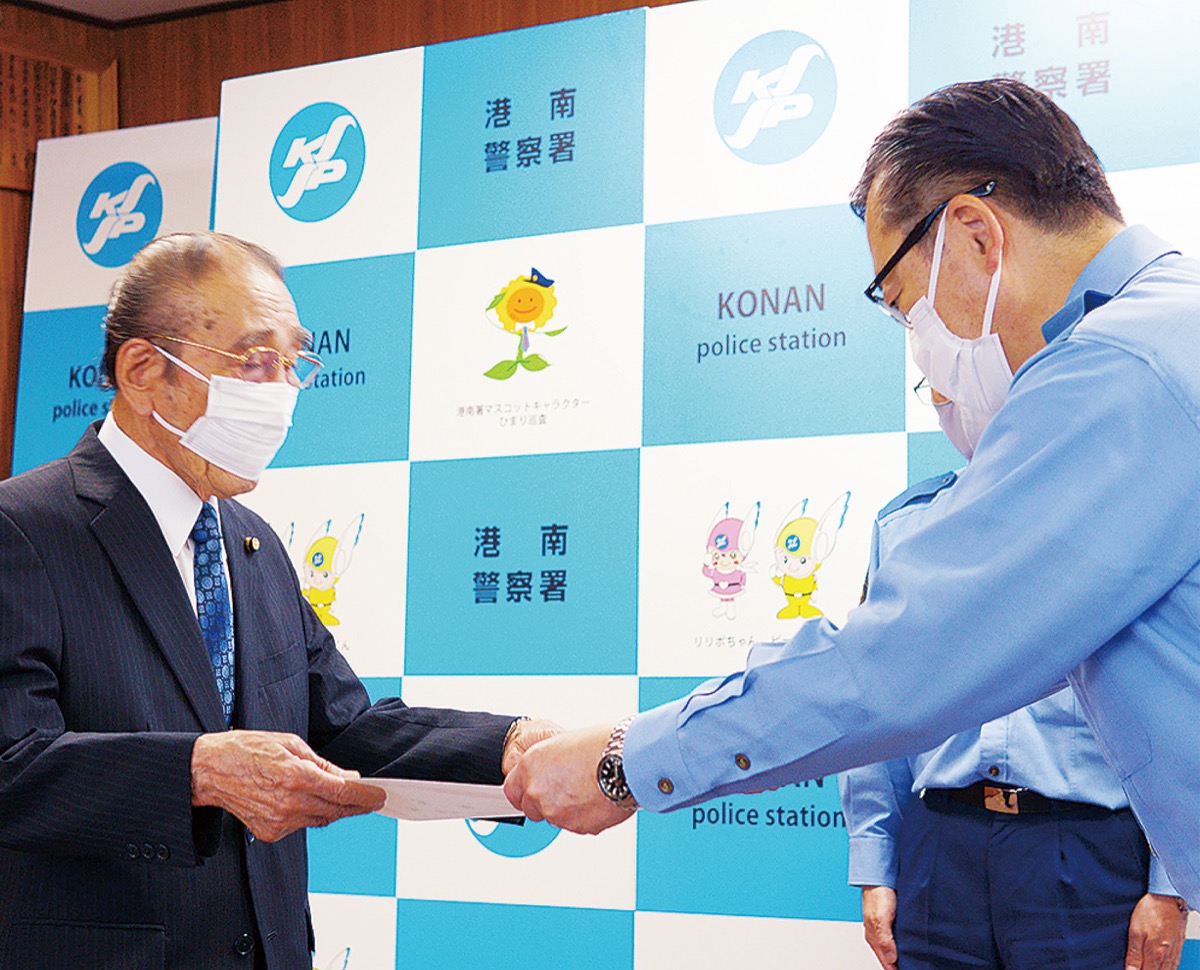 長年にわたる交通安全に対する功績を称えられ、港南交通安全協会の前会長、高森政雄さんに港南警察署から感謝状が贈られた。同署で6月26日、贈呈式が行われた。